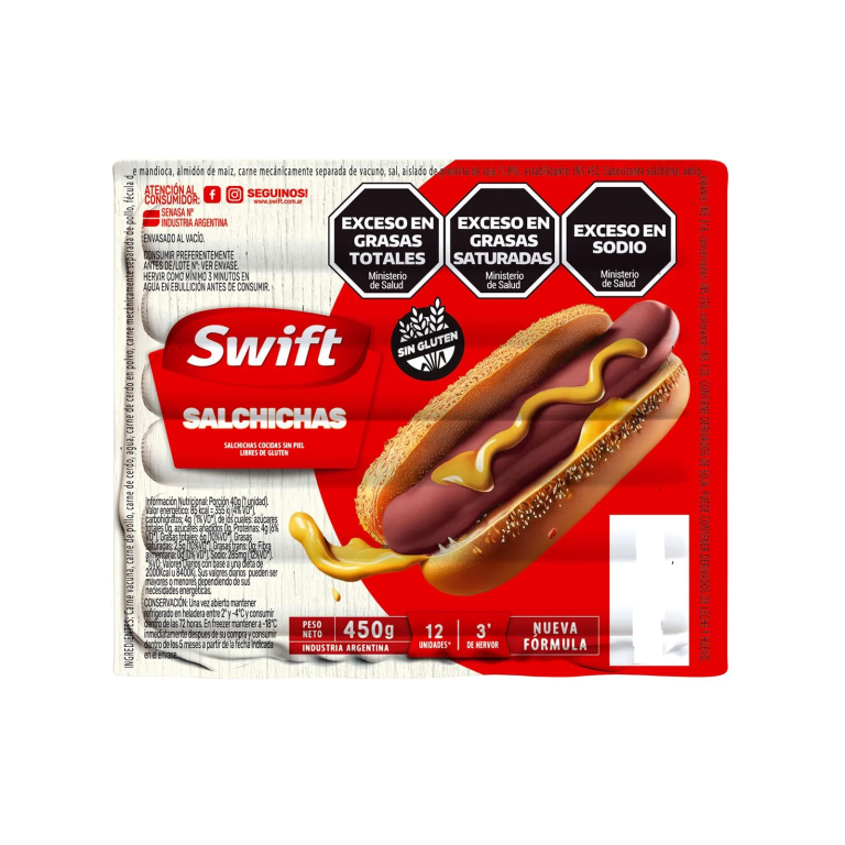 Salchichas Clásicas Swift Paquete 12 Un – 450 grs – Sin Gluten